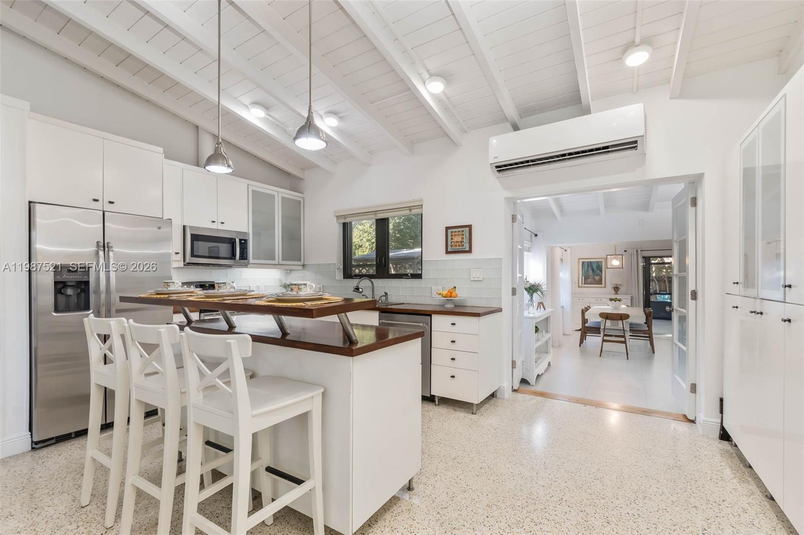 Updated South Miami (SoMi) home offering charm, character, and an unbeatable location just moments from downtown South Miami. This light-filled residence features vaulted ceilings and classic terrazzo flooring throughout, blending timeless design with modern updates. The home includes an updated kitchen and renovated bathrooms, along with efficient A/C split systems for personalized comfort. Enjoy year round relaxation in the screened sunroom, or step outside to a spacious 10,000 SF lot surrounded by mature trees, creating a private backyard oasis. Designed for entertaining, the outdoor space features a pergola/hut and even a ping pong table, perfect for gatherings or unwinding at home. Ideally located within walking distance to downtown South Miami favorites like Pura Vida, Maman, Whole Foods, and more, with easy access to nearby parks and green spaces. A rare opportunity to lease a home in one of Miami’s most desirable and walkable neighborhoods.