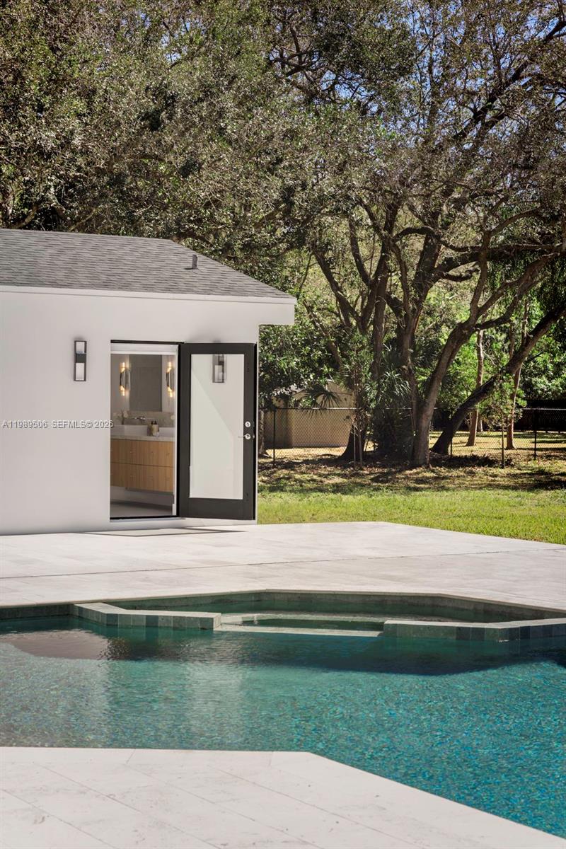 Fully renovated to perfection, this sophisticated home blends warm wood tones with a clean, modern design, creating a serene atmosphere. Set on over an acre of lush, private grounds, the property offers a sense of space, calm, and privacy. The interior is filled with natural light from expansive new impact windows, highlighting the open layout and seamless indoor-outdoor flow. The primary suite is generously sized with large walk-in closets and tranquil views of the pool & greenery. The primary bath features a soaking tub positioned to take in the lush outdoor views, creating a peaceful, resort-style experience. The imported Bali pool enhances the home’s tranquil energy. Centrally located near top public and private schools and Baptist Hospital, this home offers a perfect balance of luxury, comfort, and convenience, particularly well-suited for those seeking close proximity to one of Miami’s leading medical institutions.