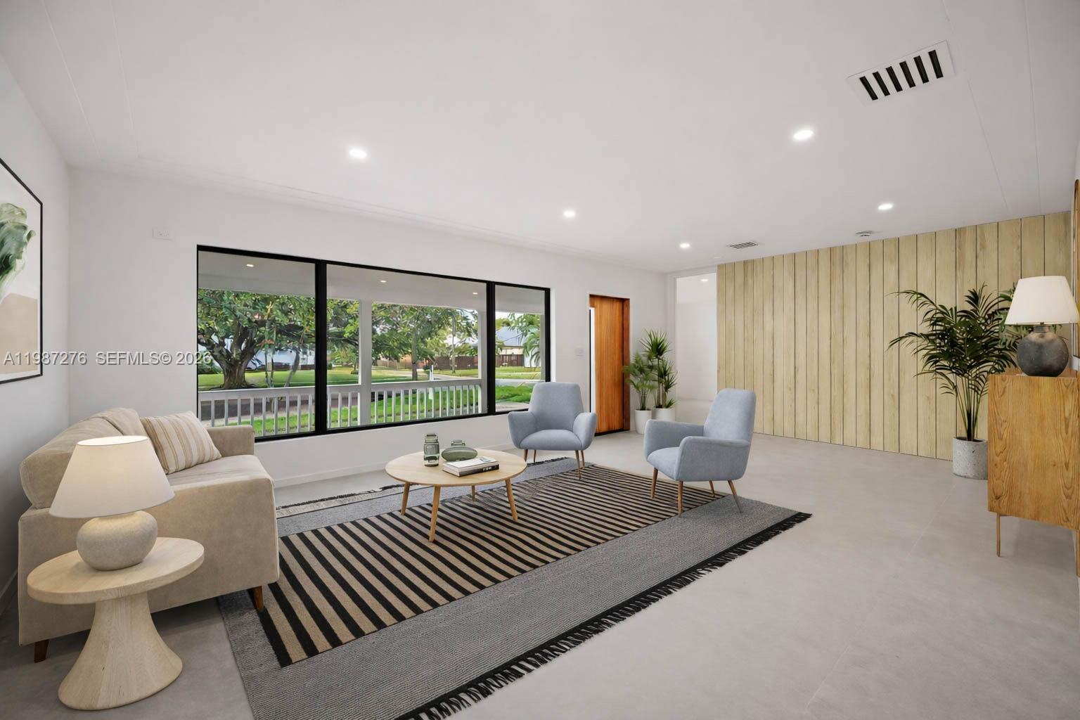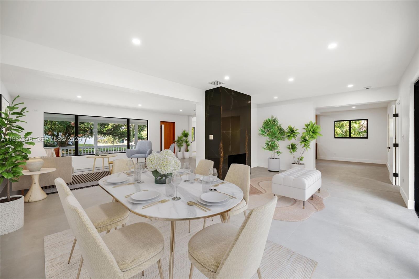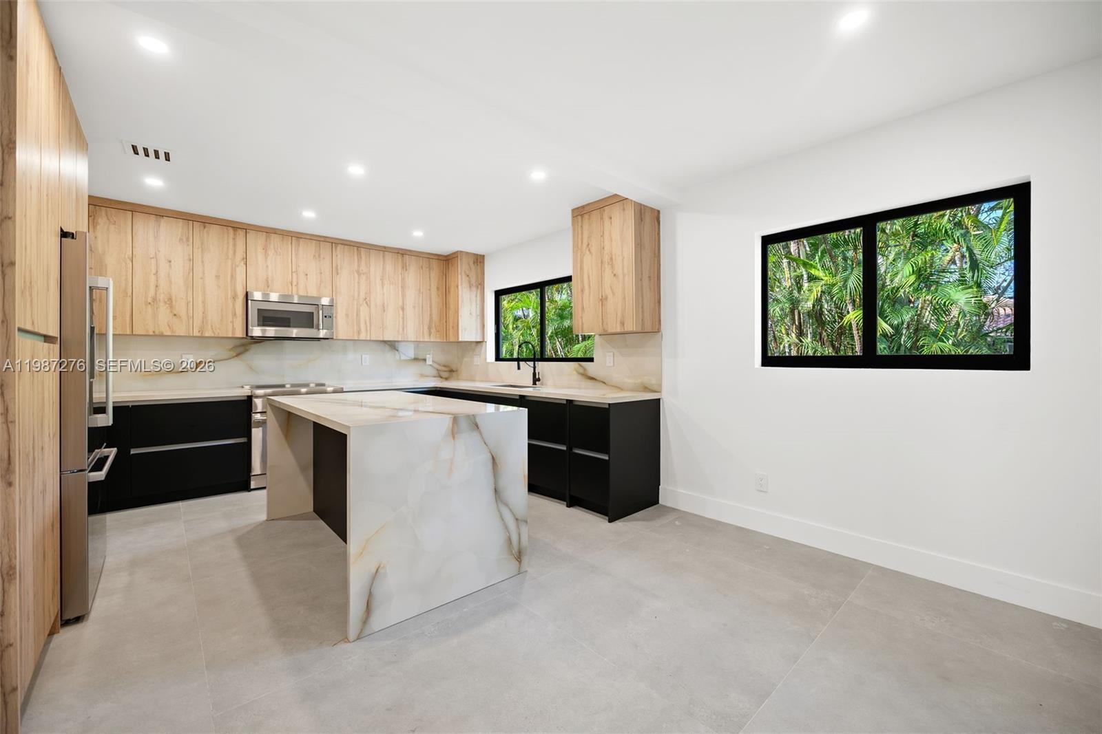 Be the first to live in this stunning, fully renovated 5-bedroom, 4-bathroom single-family home where everything is brand new. Located in one of Miami's most charming neighborhoods and walking distance to Downtown Miami Shores, this beautifully updated home is move-in perfect. Features include impact windows and doors and large format ceramic tile floors. The custom-designed kitchen is a showstopper — featuring Thermador and Bosch appliances, a center island, and custom cabinetry. Retreat to the primary bedroom with custom walk-in closet and a luxurious en-suite bathroom. All new bathrooms and built-in closets throughout. The large living and dining area is full of natural light all day, with floor-to-ceiling sliding doors opening to the backyard, complemented by an elegant sintered stone fireplace. Step outside and enjoy a lush, oversized outdoor space on a generous 13,100 SF double lot — with plenty of space to play and entertain, lawn maintenance included. Circular driveway and attached garage complete the picture. Just 1.5 miles from the prestigious Miami Country Day School (Pre-K to High School) and Miami Shores Country Club — perfect for families — with quick access to I-95, the airport, and Miami Design District. Available immediately.