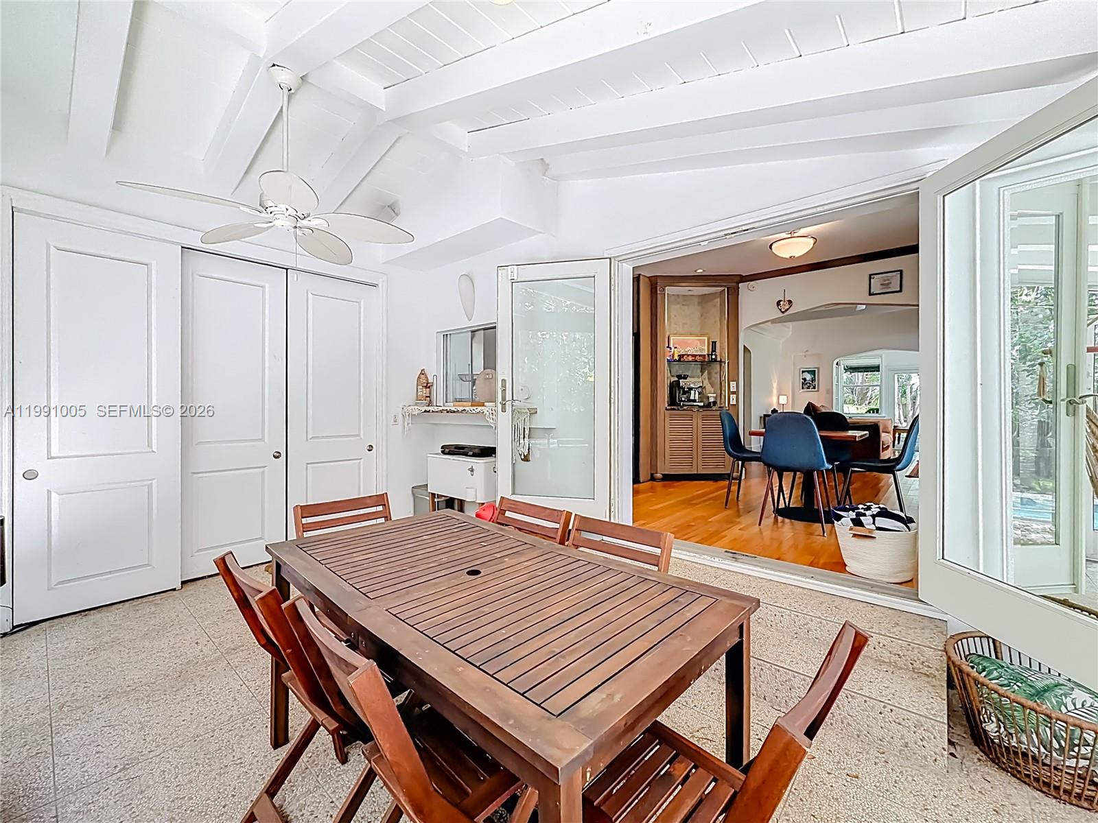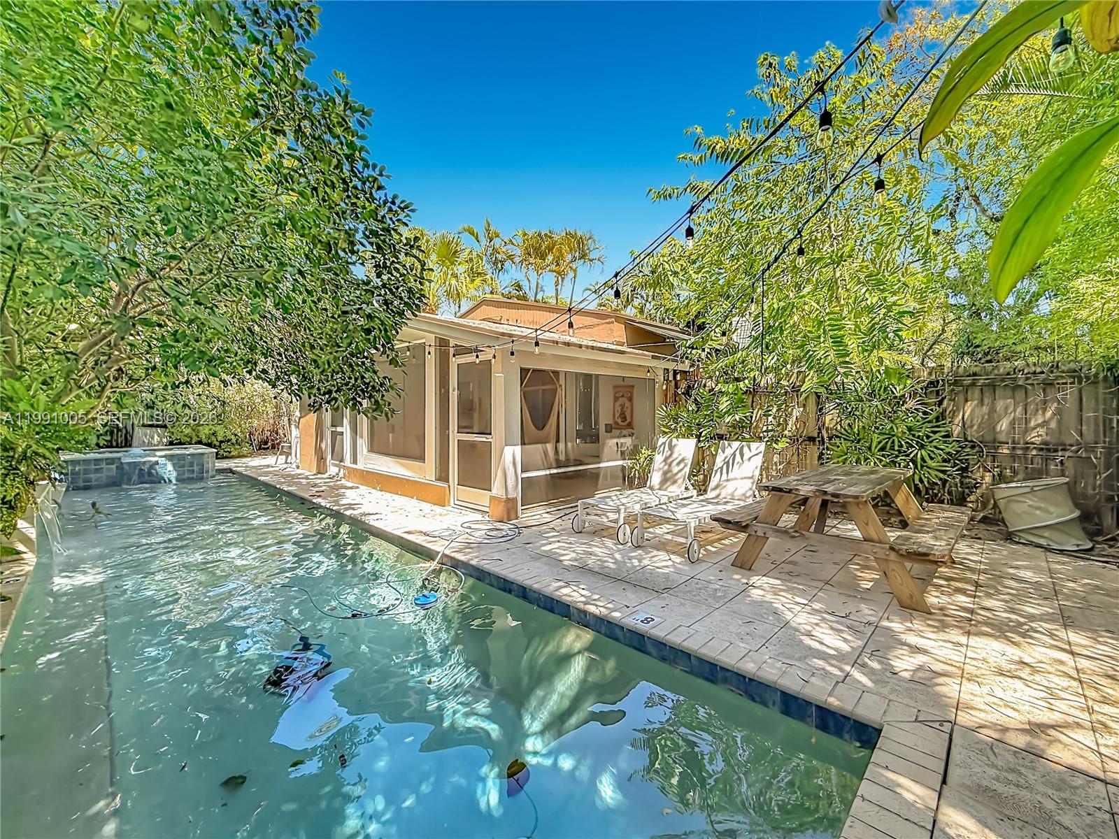 Available Now. Victoria Park’s most private retreat. Step into your own gated paradise in one of Fort Lauderdale’s most sought-after neighborhood. This stunning fully furnished 2 bed / 2 bath home offers effortless South Florida living — just minutes from Las Olas Boulevard, the beach, and downtown Fort Lauderdale. Inside: Soaring vaulted/beamed ceilings, rich hardwood floors, custom kitchen, built-ins, architectural details, and impact glass throughout. Outside: Your private resort awaits — a sleek lap pool, heated jacuzzi, lush tropical gardens, screened porch, and driveway parking for 3 cars. Completely fenced and gated for total privacy. Corner lot with manicured landscaping that turns heads every time. 3-car driveway. Fully furnished. Private pool + spa.