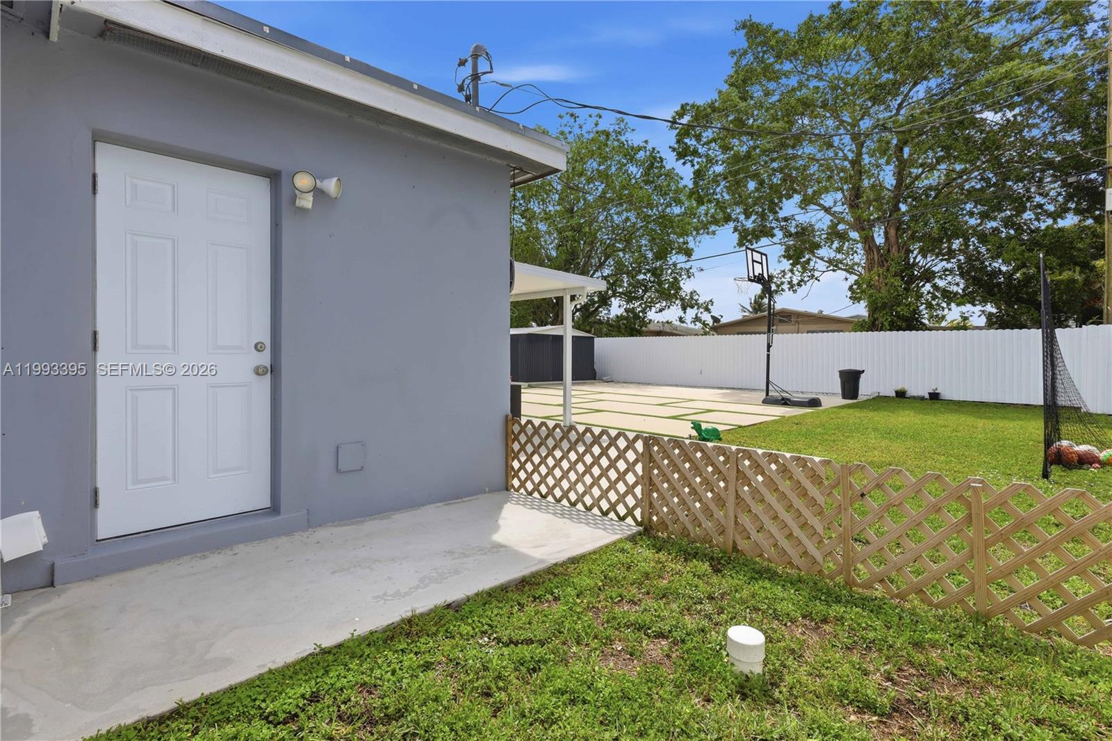 This move in ready home with 3 Bedrooms, 2 Bathrooms, updated Kitchen, new Laundry room & spacious private backyard with NO HOA is a must see. This home combines modern upgrades with functional spaces. Step into the bright living room, flowing seamlessly into the dining area and family room, creating an open and inviting space for everyday living or entertaining. The family room features two impact French doors that lead to the backyard, perfect for indoor-outdoor living. The kitchen comes with new appliances and a gas stove, ideal for fast cooking and meal prep. Adjacent is the laundry room with a stylish barn door and brand-new full-size washer and dryer. The primary bedroom includes a walk-in closet, a private bathroom with shower and a door leading to the backyard. The additional bedrooms share a full bathroom with tub and offer comfortable closets. Enjoy a large, fully fenced backyard that provides privacy, ideal for entertaining, relaxing or pets, along with a full-size shed for extra storage. Additional features include a tankless water heater, new A/C, hurricane shutters and no carpet throughout. Plus Lawn care included in rent. This home is conveniently located near restaurants, shopping and major roads. Request your showing.