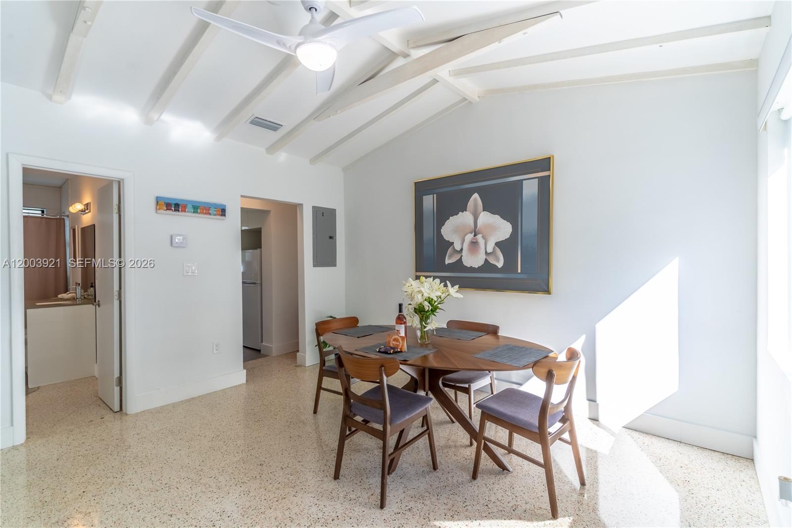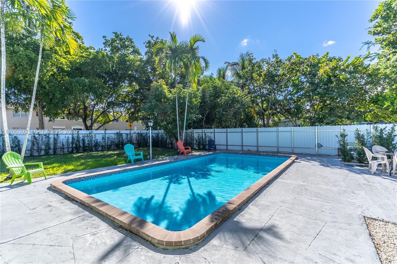 This stylish, fully renovated, and thoughtfully furnished one-bedroom, one-bathroom apartment offers both comfort and convenience in a beautifully designed space in the Biscayne Park area. The open, airy living room features high vaulted ceilings that fill the space with natural light, creating a bright and inviting atmosphere. It includes a 55” Smart TV, a queen-sized sofa bed for additional sleeping arrangements, a dedicated laptop-friendly workspace, and a dining area that comfortably seats four. The fully equipped kitchen provides everything you need to prepare meals at home, along with convenient extras such as a coffee maker, blender, toaster, and dishwasher for effortless cleanup.The bedroom is designed for relaxation, featuring a king-sized bed and a mirrored closet with ample storage space to help you settle in with ease. A full bathroom includes a tub/shower combination along with modern fixtures and finishes. Residents also enjoy access to shared community spaces, including a beautifully maintained backyard with a pool, deck, and comfortable seating areas—perfect for relaxing. The property includes two assigned parking spaces conveniently located directly in front of the unit. Rent covers all utilities, including electricity, water, and high-speed fiber optic Wi-Fi. Lease terms are available for six or twelve months, with a maximum occupancy of two residents.