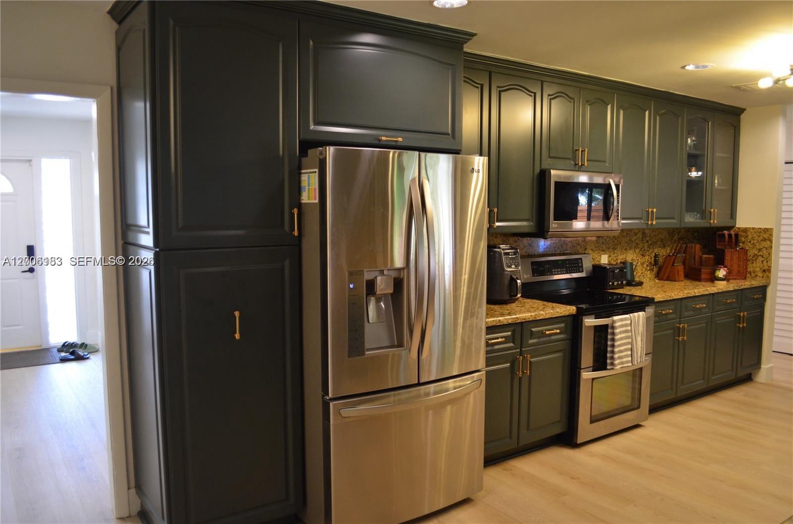 Come see this beautiful 4 Bedroom | 2 Bath | 2 Car Garage Home in the HEART of Plantation. A large 2500 Sqft home in Marcano Estates with NO ASSOCIATION! BRAND NEW FEATURES include: fresh paint (interior, exterior, driveway), new fence, updated landscaping in front and backyard, new pet-friendly turf in the backyard (a clean oasis with little maintenance!), 2023 SS kitchen appliances, 2025 washer/dryer, new kitchen and bathrooms with granite countertops, new LVP floors, partial impact windows, new impact double doors in the main entrance, and completely updated light fixtures, fans, and hardware throughout the home. Powered by SOLAR PANELS reducing the cost of electricity to nearly NOTHING. Newer Roof (2019), AC (2025) with new ducts and efficiency. Great home for entertainment: Screened patio, spacious backyard, and large driveway fitting 10 cars for your family gatherings. This gem will not last! Currently rented for $5500/m until 07/31/2026. Easy to show and quick approvals!