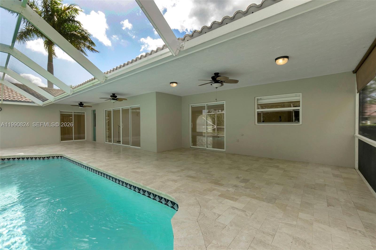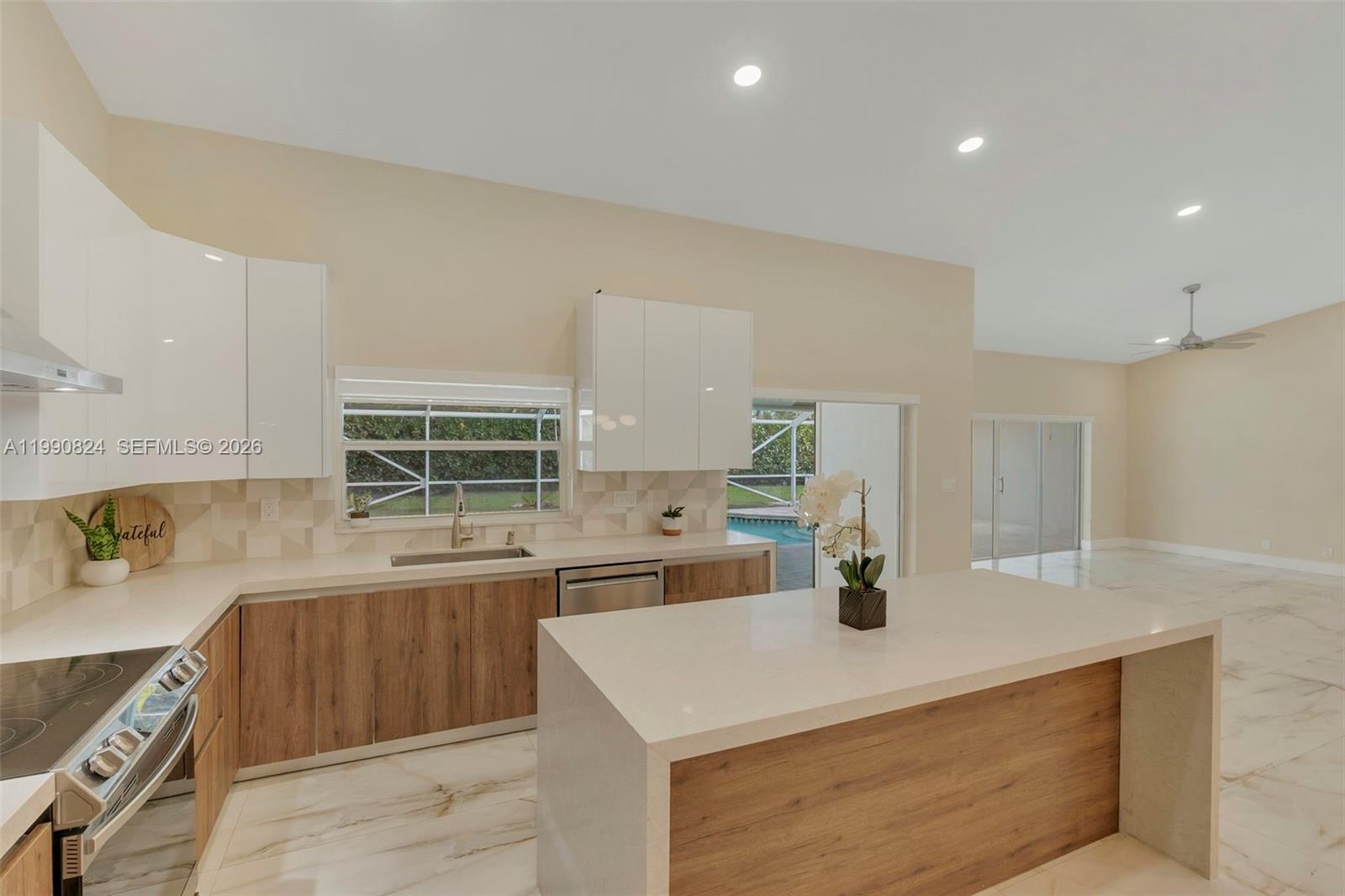 Gorgeous 4-bedroom, 2-bathroom pool home in the desirable Brookside neighborhood of Coral Springs. This home features an open floor plan with high ceilings and abundant natural light throughout. The modern kitchen is perfect for entertaining, offering an oversized island, quartz countertops, and stainless steel appliances. Both bathrooms have been updated with granite countertops and stylish tile finishes. Step outside to a private backyard with lush landscaping and a screened pool, complete with a baby fence for added safety, creating the perfect space to relax or entertain. The pool area also features brand-new travertine. A circular driveway provides ample parking, and the home includes an EV charger plug in the garage. Rent includes lawn and pool maintenance. The back doors will be replaced with impact doors, and the cabana bathroom door will be upgraded to a beautiful glass door to bring in more natural light. Conveniently located near shopping, dining, top-rated schools, and major highways, this home offers comfort, style, and convenience in one of Coral Springs’ most sought-after neighborhoods.