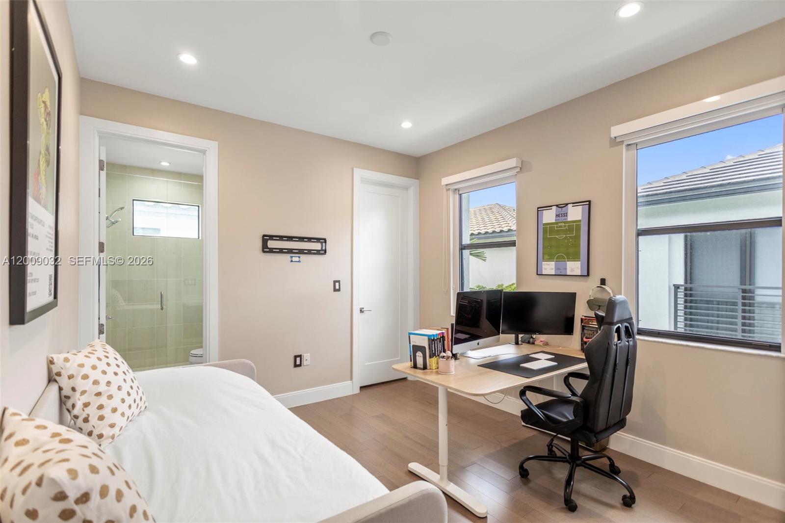 This beautiful home in Canarias at Downtown Doral offers three bedrooms, three and a half bathrooms, and a two car garage. The open concept layout and modern kitchen create a bright and functional living space. The home features built in closets in all bedrooms, an outdoor patio with a BBQ area, and a garage upgraded with epoxy flooring, built in storage, and an electric car charger. Enjoy access to excellent community amenities, including a clubhouse, resort style pool, well equipped gym, kids play area, and indoor basketball court. Ideally located near top rated schools, supermarkets, parks, restaurants, and the Palmetto Expressway, offering convenience and easy connectivity throughout Miami.