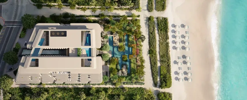 The Delmore Surfside Miami is a 12-story ultra-luxury residential complex in Miami, situated on two acres of prime oceanfront with a private beach, right in the heart of the so-called "Billionaire’s Triangle" — Surfside, Bal Harbour, and Indian Creek Village.