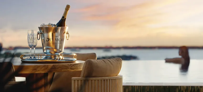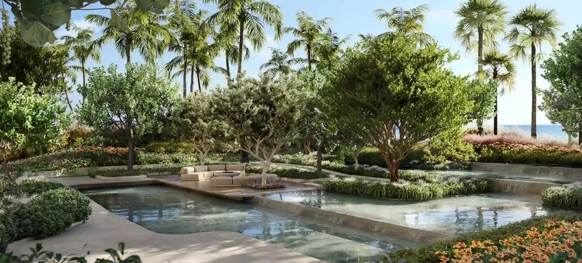 The architectural design of The Delmore is inspired by Miami’s natural elements — ocean waves, dunes, and wind — creating a sense of dynamic landscape harmony. The interiors, crafted by Hirsch Bedner Associates, embody the aesthetic of serene luxury, featuring natural materials, thoughtfully designed lighting, custom kitchens and bathrooms, exquisite furniture, and textiles.